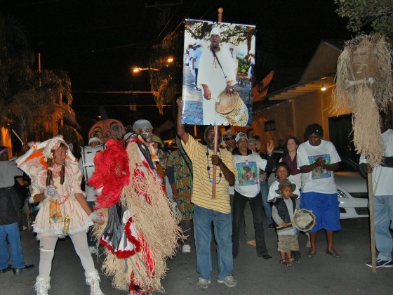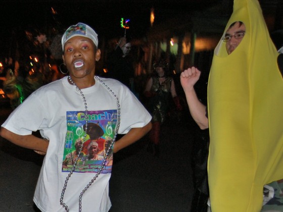 The 6' to 9' Social Aid and Pleasure Club's 7th annual Halloween parade rolled Saturday evening from the 6th to the 9th ward, passing out candy, homemade toys and sheer holiday fun to neighborhood chidren en route. This year's theme was: "The End of Times Marches On,". The parade was dedicated to Collins Anthony "Coach" Lewis, a longtime participant in the Fi Yi Yi, part of a lineup that included the Original Big 7 Social Aid and Pleasure Club (with the 21st Century Brass Band); the Northside Skill and Bones Gang; The Dr. Martin Luther King Charter School Marching Band; the Noisician Coalition; the New Birth Brass Band; the Intergalactic Krewe of Chewbaccus and more.